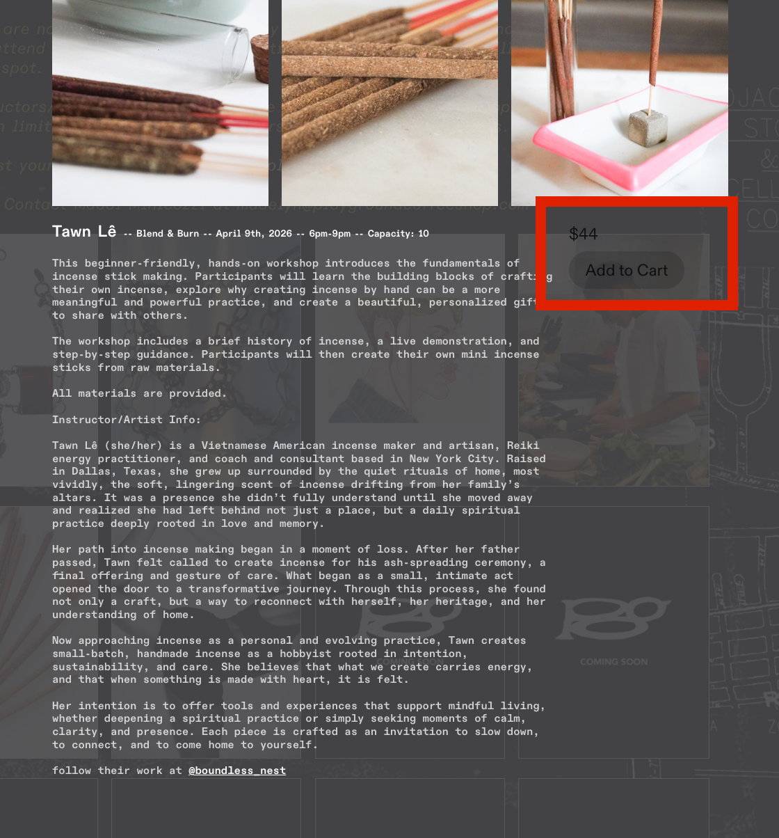 Tawn Le, founder of Boundless Nest, rediscovered her connection to incense after her father’s passing, when creating incense for his ceremony became a deeply healing and transformative act. She now shares this mindful craft to help others cultivate peace, connection, and a sense of home through scent.